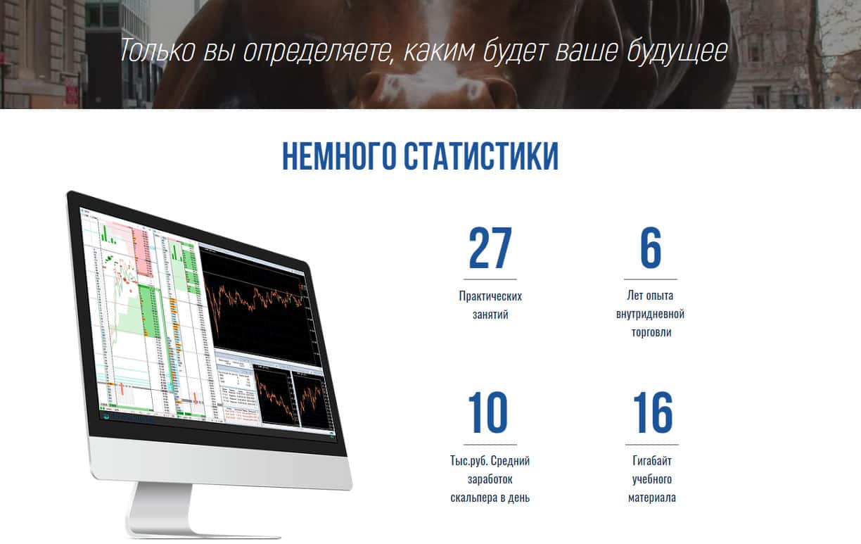 Добавив Золотого Бычка на фон и написав мудрую цитату, шулера пытаются привлечь Вас для того, чтобы Вы учились скальпингу именно у них. Под всеми этими "мудрыми мыслями" скрывается простая информация, которую знает каждый начинающий, кто хоть немного вникал в сферу трейдинга на разного вида платформах. Также, на сайте прикреплена "статистика" курса.