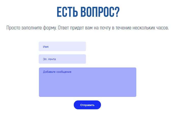 Если у Вас есть вопросы к мошенникам из конторы Про Скальпинг, то Вы можете задать их в форме, которая предоставляется на сайте. Как и при покупке, Вы должны ввести своё имя, электронную почту и сообщение с вопросом, который Вас интересует. Эта форма, как нельзя кстати сюда подходит, в отличии от такой же формы при покупке курса за реальные деньги.