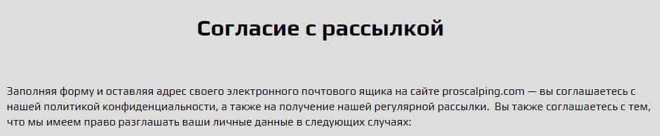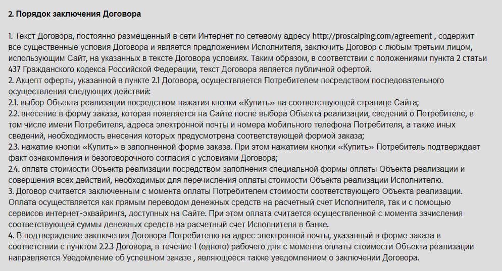 Мошенническая компания ProScalping разместила информацию о договоре на сайте