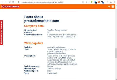 В глобальной сети интернет, по адресу scamadviser com, находится подробная критика работы сайта ProTradeMarkets, с полным разбором мошеннических схем, аффер, которые проводит контора под названием "ProTradeMarkets". Сервис уличают в том, что он активно занимается скамингом, обворовывая несчастных клиентов, которые доверились этим жуликам, кричащих о доверии.