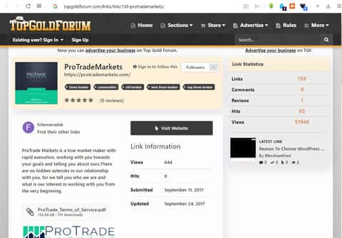На форуме topgoldforum, на котором идут бурные обсуждения насчет всяких брокеров-мошенников, обворовавшие почти половину населения планеты, и, разбогатевшие на чужом горе. Администрацией форума было написано, что отдав свои последние деньги брокеру ПроТрейдМаркетс, вы сделаете правильный выбор и получите такую выгоду от ваших вложений, что вам и в снах не снилось.