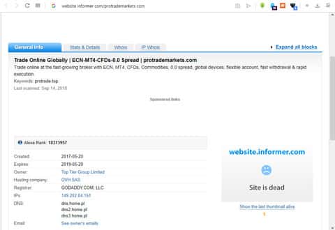 ProTradeMarkets разоблачили люди с scamadviserБольшое количество полезной информации, которая поможет раскрыть жуликов с ПроТрейдМаркетс, была выложена и находится на сайте informator com, там более подробная информация об дате создания сайта и последнего тестирования последнего, о руководстве конторы жуликов и адресе хостинга. Сам портал ничего прямо не говорит по поводу данного брокера,но явно намекает.