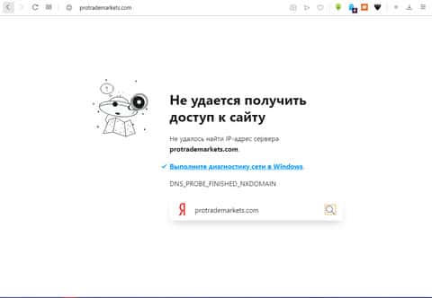 Сервис ПроТрейдМаркетс находится в глобальной мировой паутине Internet по адресу: protrademarkets com. Введя этот адрес в поисковой строке, нам говорят, что не удаётся получить доступ к сайту. Это значит, что данный сайт существовал, но был закрыт или забанен. А причина по которой сайт закрыли? Ответ прост: данный проект уже соскамился до наивысшей степени, вот и результат их действий.
