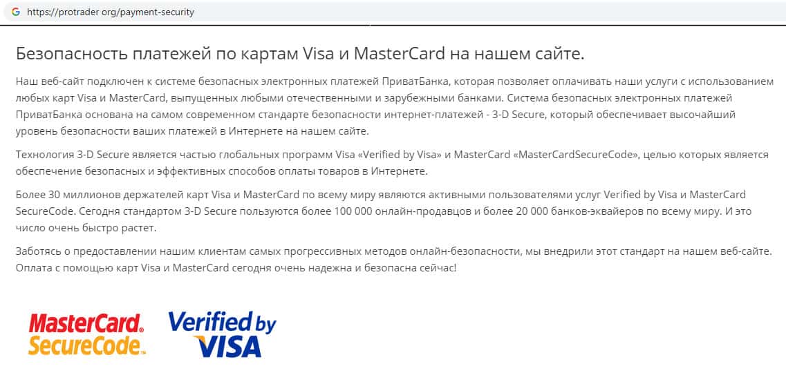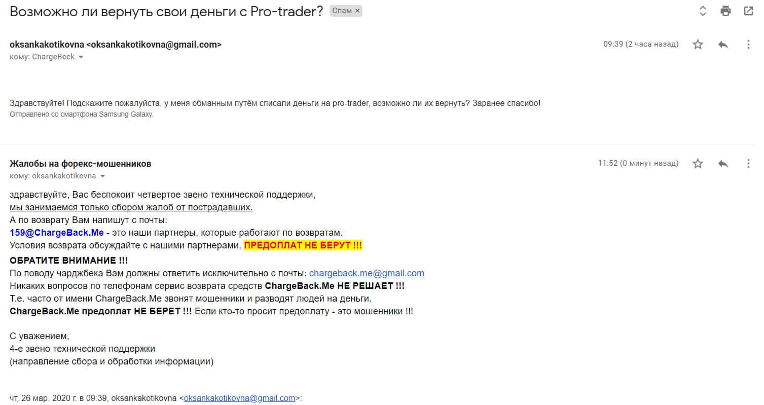 - Информация о политике возврата платежей на сайте жуликов ProTrader Org