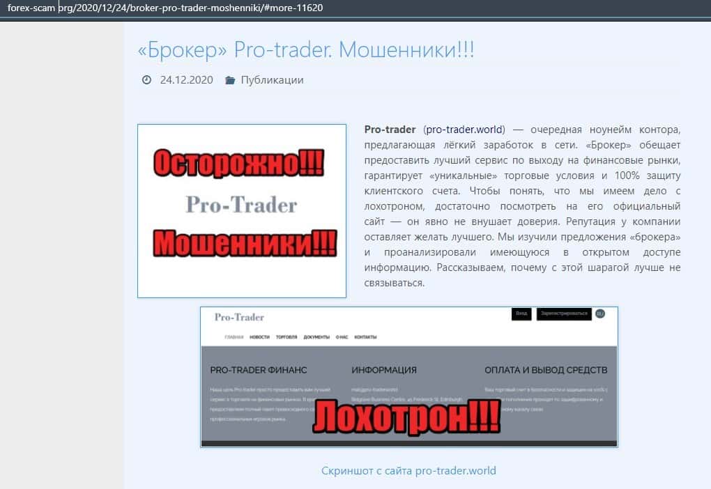 - Жулики Про Трейдер на своем интернет-ресурсе разместили псевдо-обучающие статьи