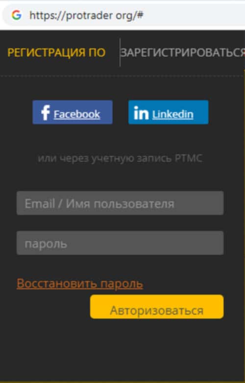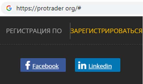 Мошенники Про Трейдер так же предлагают зарегистрироваться через социальные сети, а именно Фейсбук и Линкедин. Якобы под предлогом того, что это очень просто, нажал ярлык и все готово. Не забывайте, что аферисты ProTrader Org фиксируют все данные, которые указаны на страничках пользователей.