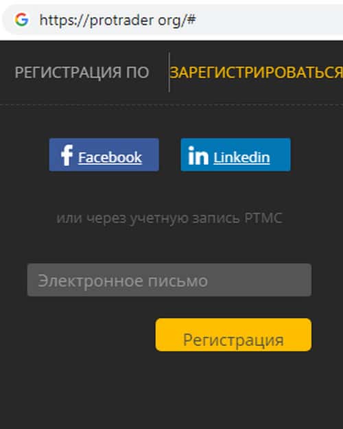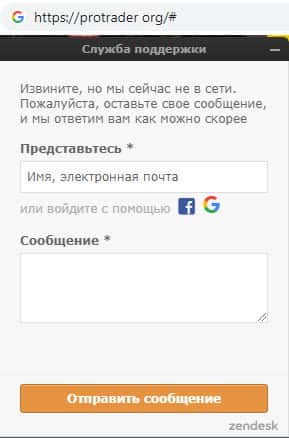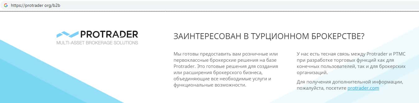 - адрес электронной почты брокерской конторы Про Трейдер: info@protrader org