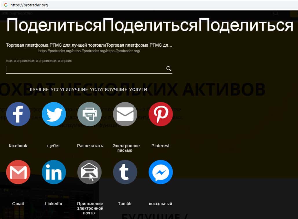 - Аферисты ProTrader Org заманивают наивных людей на свой фальшивый сайт через социальные сети