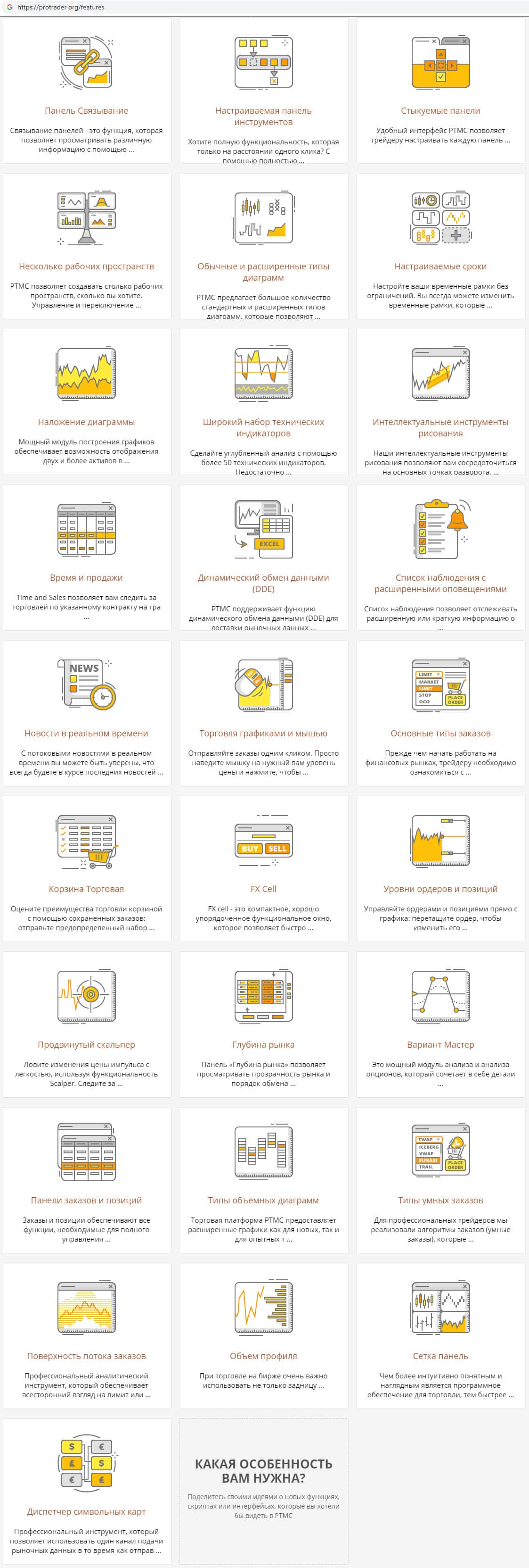 Здесь шулера Про Трейдер заговаривают зубы людям, рассказывая о функциях своей торговой платформы. В любом случае необходимо помнить тот факт, что от красоты торговой платформы не зависит ничего, в том числе и возможность получения какой-либо прибыли. Поэтому читать то, что пишут аферисты ProTrader Org не имеет смысла !!!