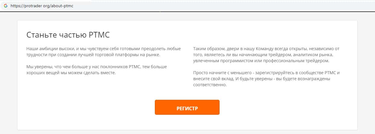 Здесь аферисты Про Трейдер указывают информацию о том, что зарегистрировавшись на их сайте якобы становишься частью их команды, не зависимо от того опытный ли Вы трейдер. Данная контора рассчитана на ничего непонимающих новичков. Задумайтесь прежде чем связываться с псевдо-брокером ProTrader Org !!!
