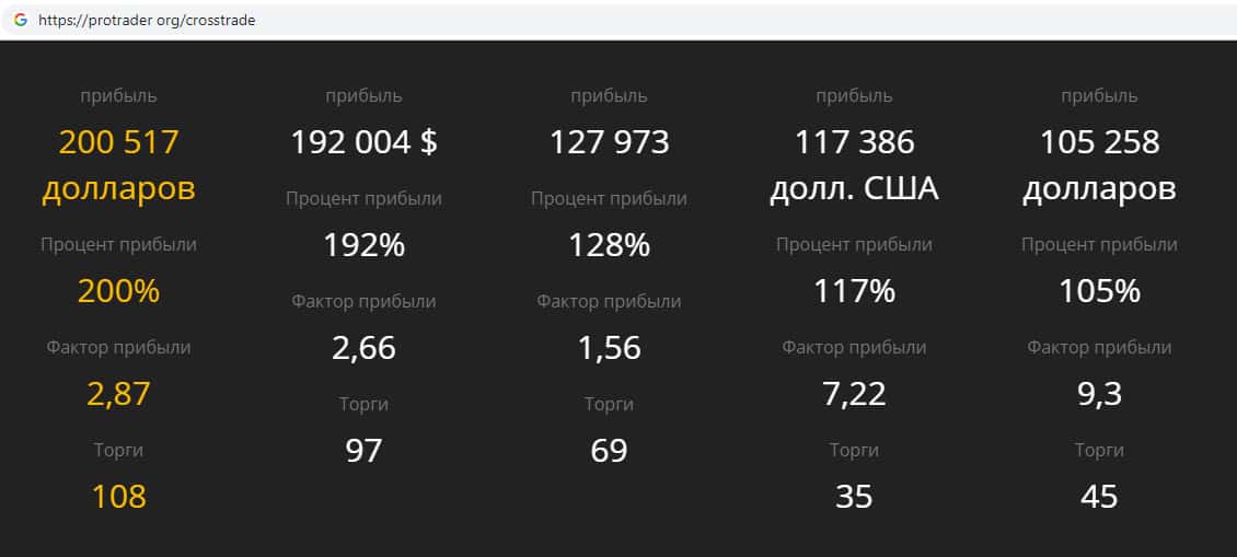 Статистические данные, которые мошенники ProTrader Org опубликовали на своем фейковом интернет-портале