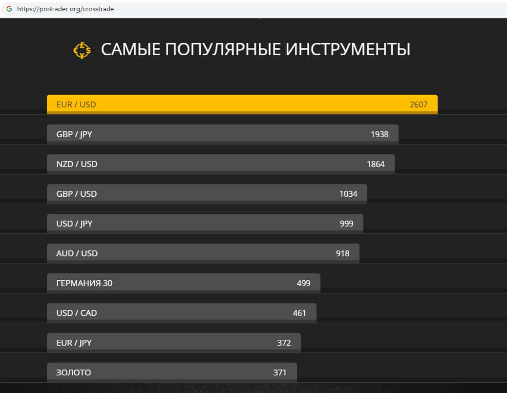 - Финансовые инструменты предоставленные на сайте мошеннической организации Про Трейдер