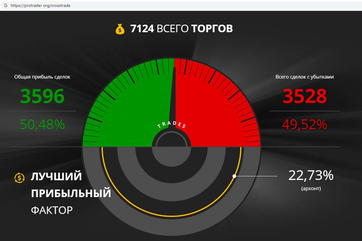 Здесь мошенники ProTrader Org опубликовали информацию о том, что прибыльных сделок осуществленных на их дырявом интернет-сервисе якобы больше, чем убыточных. Эти данные не имеют никакого отношения к настоящим данным по той причине, что цифры предоставленные на этом изображении на сайте аферистов Про Трейд не меняются.