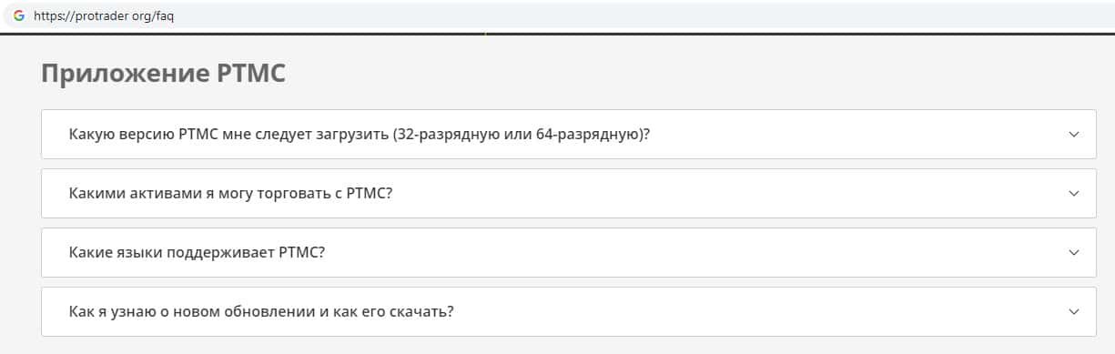 Мошенники Про Трейдер так же разместили вопросы, которые могут возникать у пользователей их сайта по поводу предлагаемой программы для торговли на их сайте. Скачивать какие-либо приложения предлагаемые скам-брокером ProTrader Org не рекомендуем, поскольку они могут содержать вредоносные вирусные программы.