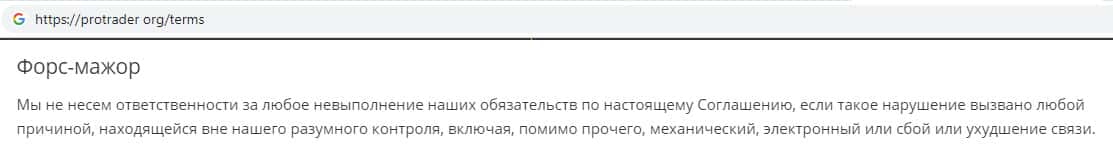 - Условия пользования сайтом псевдо-брокерской конторы Про Трейдер