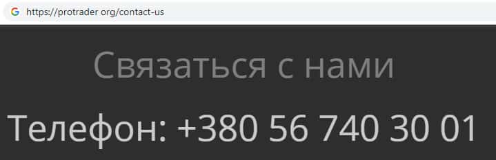 Жульническая организация ProTrader Org, о местонахождении которой ничего не известно, на своем официальном сайте указала номер контактного телефона своей организации, а так же указывает адрес электронной почты своей конторы, который указан ниже:
