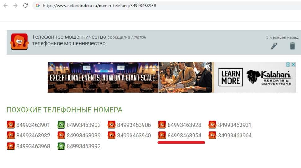 Номер телефона компании аферистов ProTrading Su обвиняется в мошенничестве. По версии одного из интернет ресурсов, номер компании имеет отрицательную оценку, а так же номер телефона отнесли к категории "мошенничество". С этого номера поступают звонки пользователям с одной тематикой - вытащить деньги.