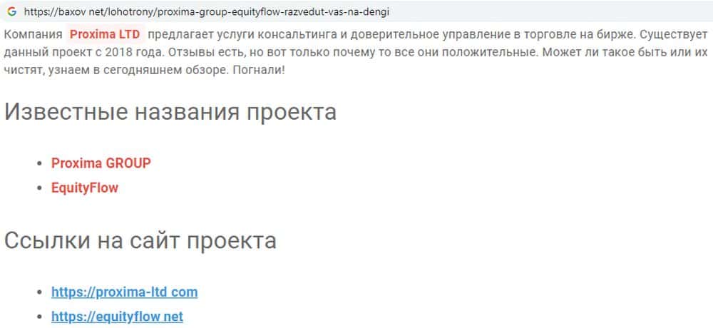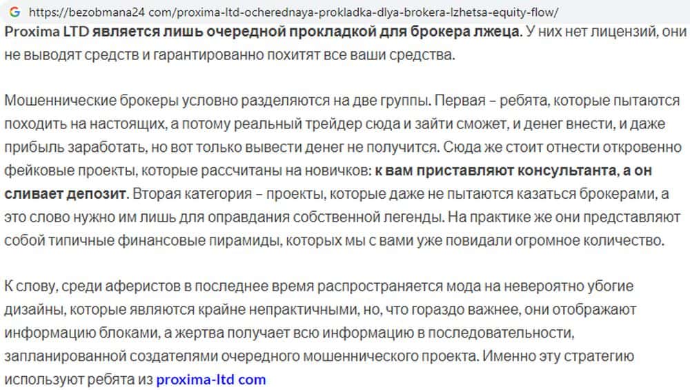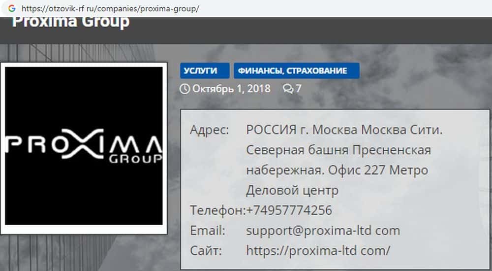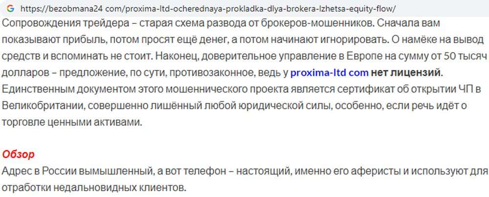 - Сайт махинаторов Proxima-Pro