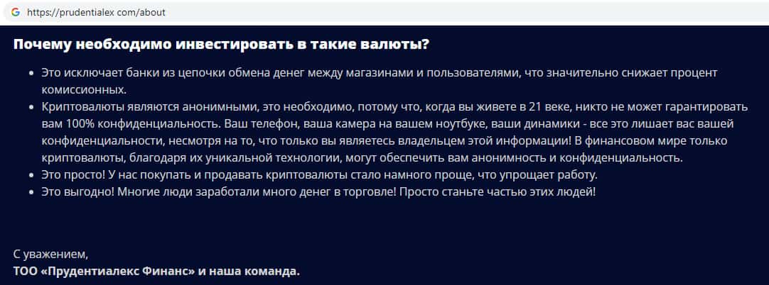 - Что рассказывают о своей компании мошенники Прудентиалекс?