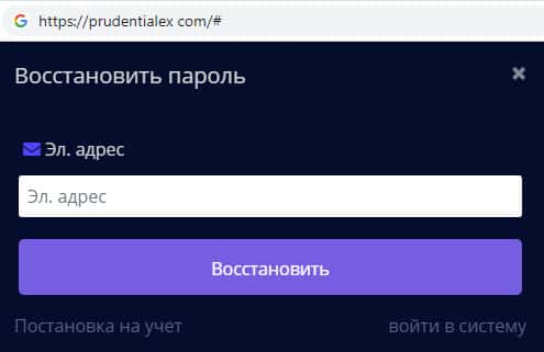 Во время регистрации на сайте мошеннической конторы Прудентиалекс пользователь сам указывает пароль его аккаунта. При этом все данные фиксируются администрацией сайта. В любом случае компания имеет доступ к данным клиента, но в данном случае перекладывает всю ответственность на того, кто регистрируется.