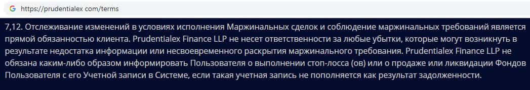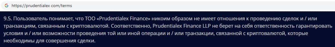 Пользовательское соглашение мошеннической организации Prudentialex