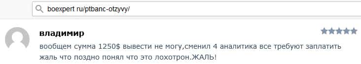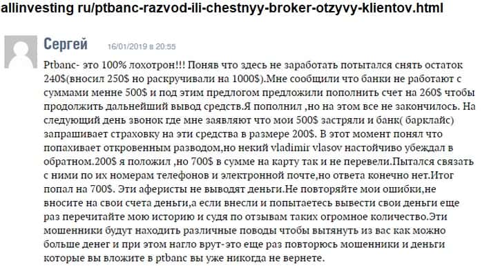 - Мошенники PT Banc кинули трейдера на 500 долларов