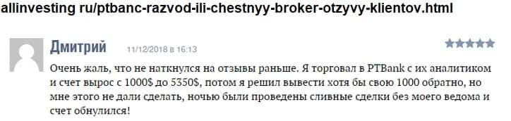 Клиент потерял 5350$ от сотрудничества с PT Banc