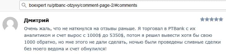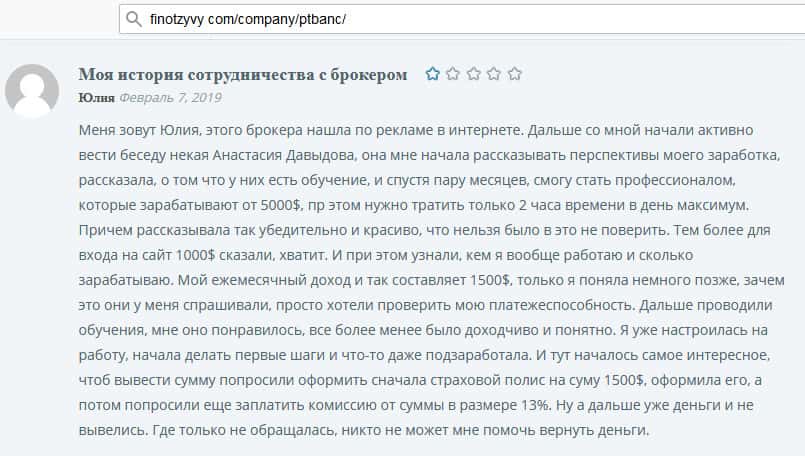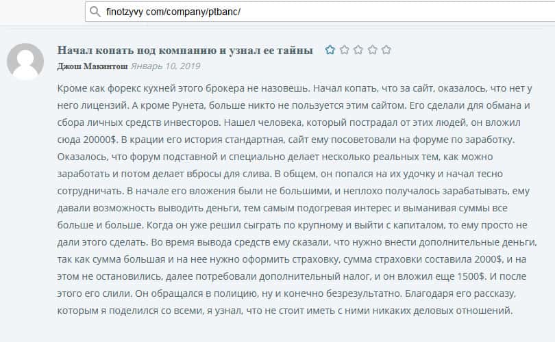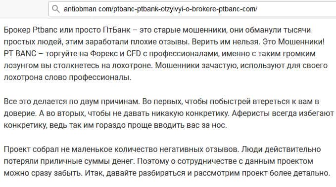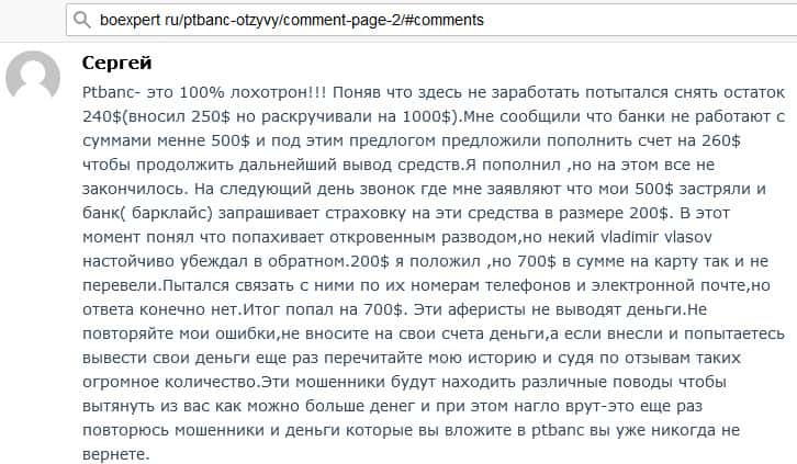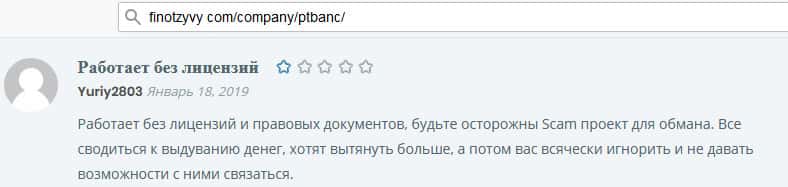 - Трейдер слишком поздно поинтересовался отзывами о шаражке PT Banc и попал на деньги