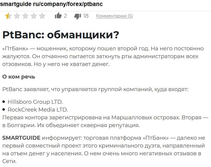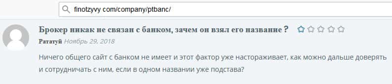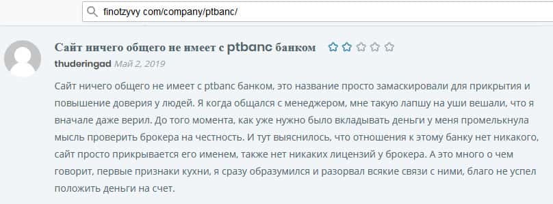 - Псевдоброкер ПТ Банк никак не связан с банком, хоть и взял его название