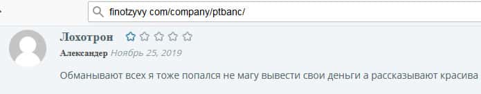 В сети есть очень много жалоб на деятельность мошеннической конторы ПТ Банк