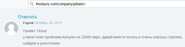 Люди не сдерживают своих эмоций, когда речь идет о мошеннической конторе PT Banc