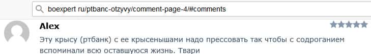 Так некоторые люди называют контору PT Banc крысами. И желают ее сотрудникам и организаторам всего "наилучшего". Просто мошенники в сети уже стольких кинули, что люди не считают нужным сдерживать свои эмоции. И говорят напрямую все что думают об этой лоховозке вслух.
