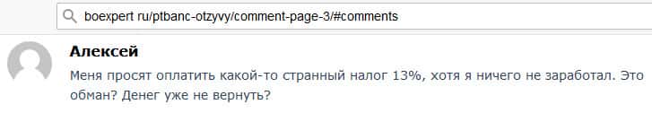 Абсурд, но человек еще даже ничего не заработал, а его уже просят оплатить налог в 13%. В отсутствие вообще какой-либо прибыли. В такой ситуации не стоит вообще ничего платить, ибо становится понятно, что ПТ Банк просто разводят вас на деньги и все. Само по себе такое невозможно.