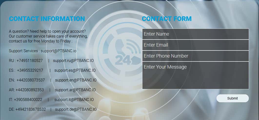 Из способов связи с мошенниками PT Banc доступны следующие: