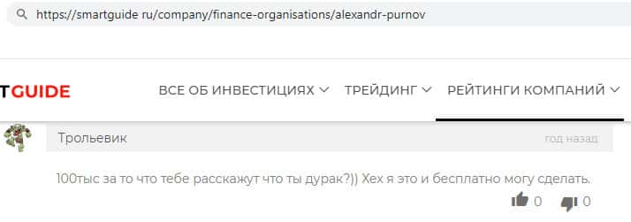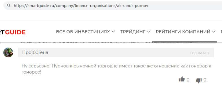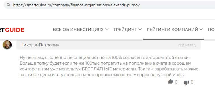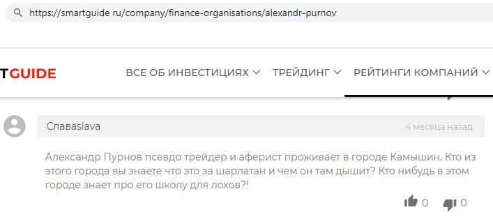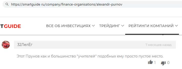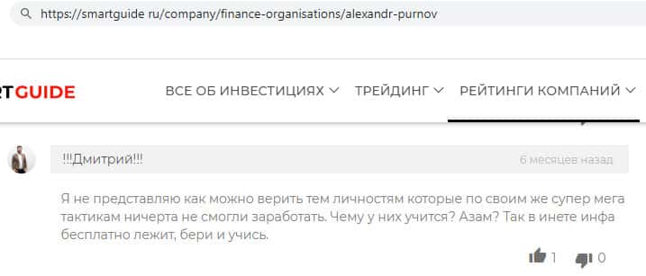 Данный пользователь в своём отзыве о конторе разводил Purnov-Club порекомендовал не доверять этой организации. Доверять нужно тому учителю, кто сам зарабатывает и в состоянии доказать это.