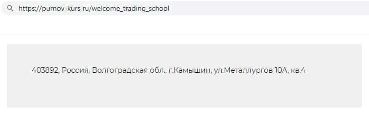 На своём втором интернет ресурсе компания лохотронщиков Purnov-Club указала адрес своей конторы, который скорее всего является липовым. Адрес мошенников: