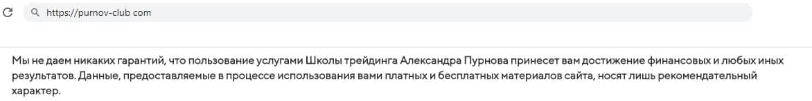 Вот пункт соглашения, в котором мошенники Пурнов Клуб прямо указывают, что не дают никаких гарантий того, что клиент сможет заработать. так как информация компании имеет только рекомендательный характер.