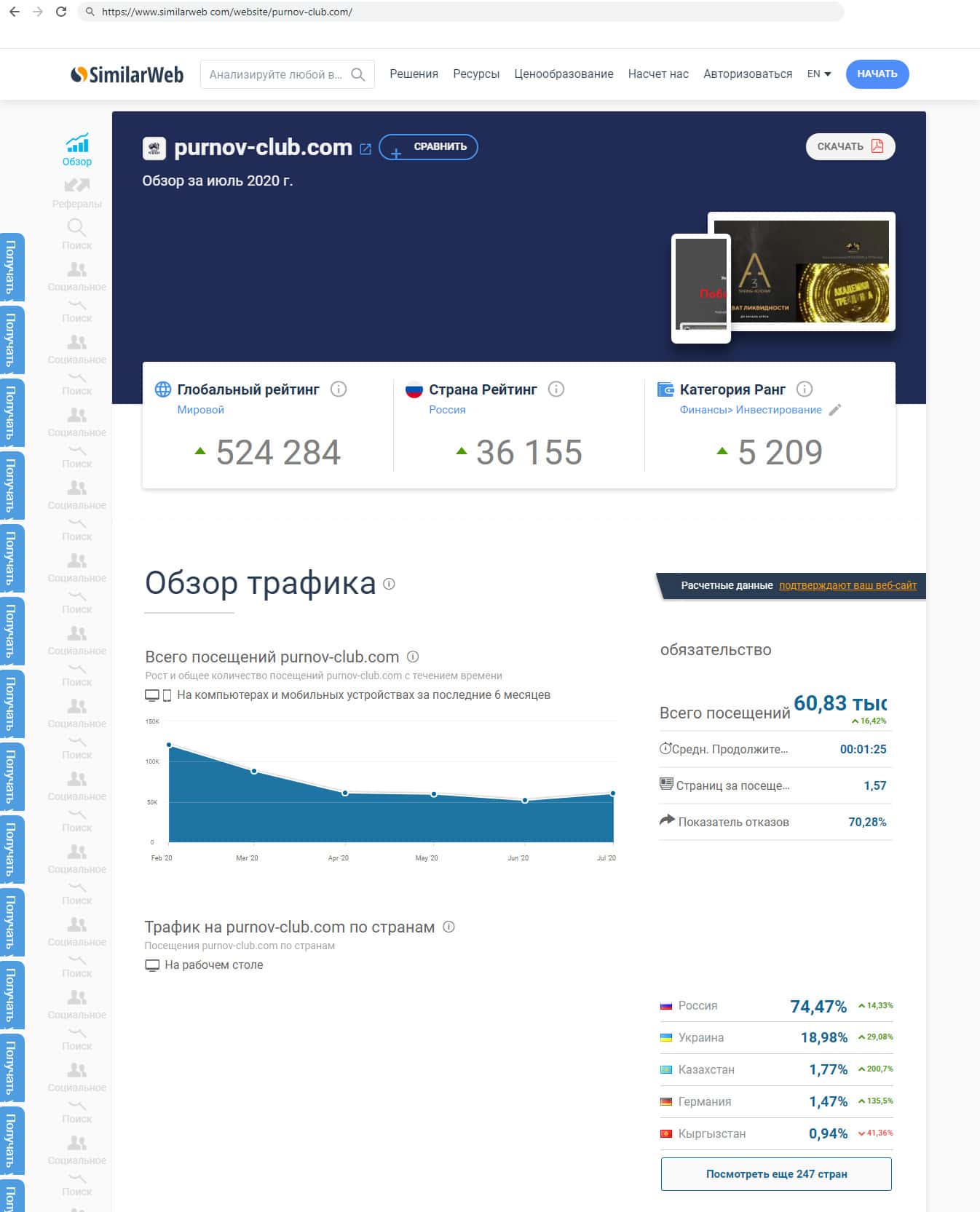 Информация о трафике главного сайта лохотронщиков Purnov-Club