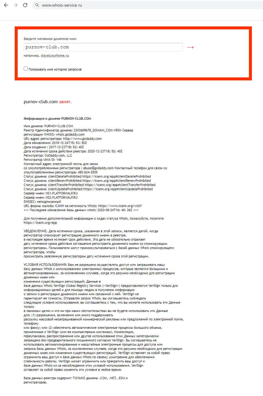 Кто владеет доменом компании аферистов Пурнов Клуб?
