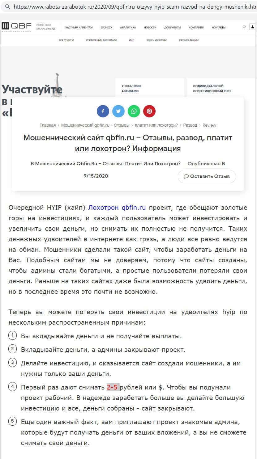 - Мнение интернет-ресурсов о мошенническом проекте QB Fin