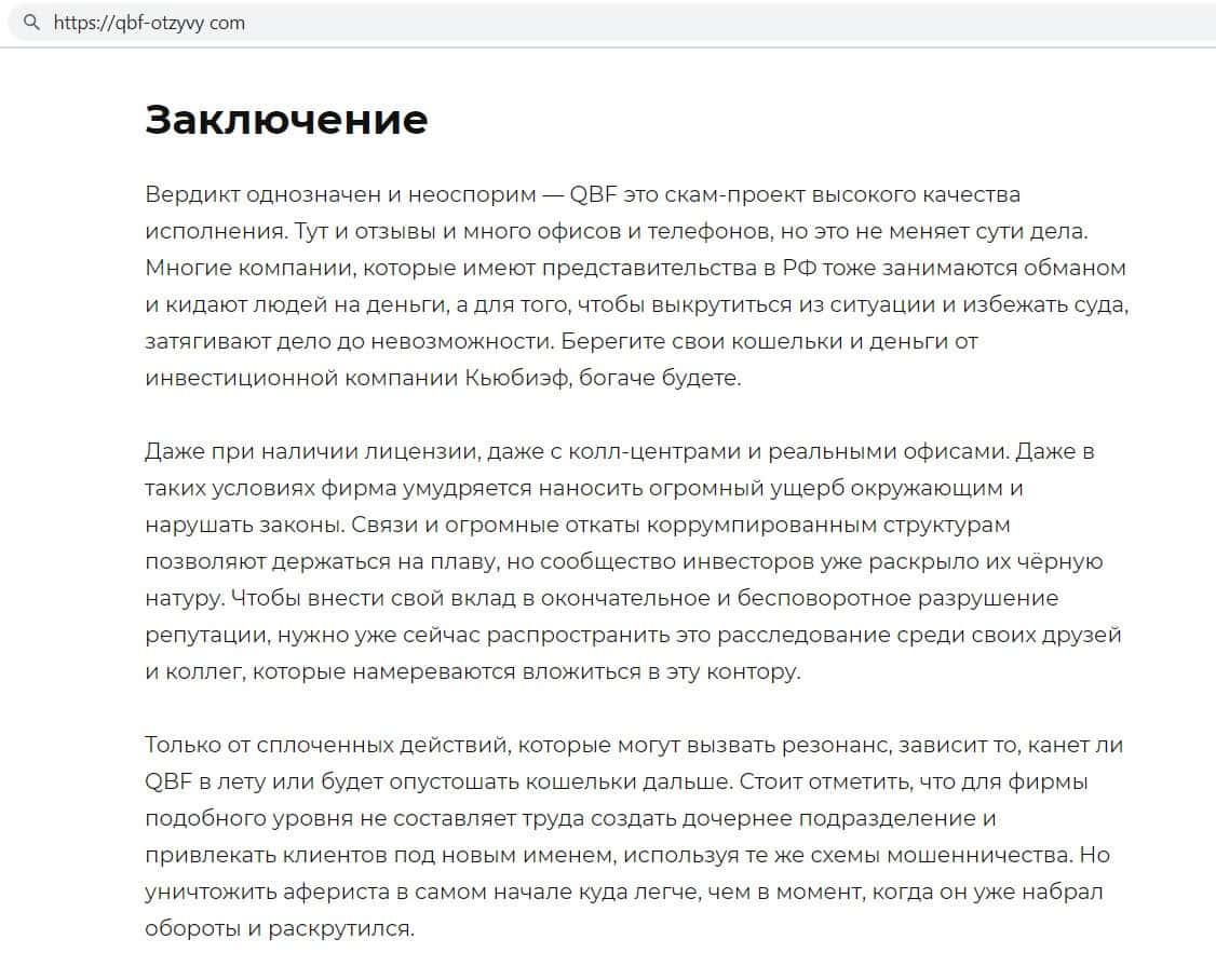 qbf-otzyvy com - сайт с информацией о разводилах Кью Б Фин