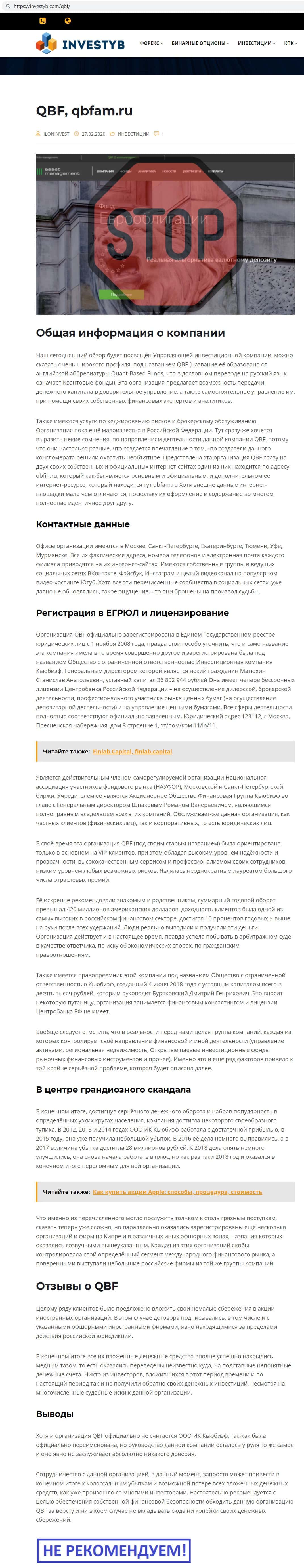 Интернет ресурс qbf-otzyvy com сделал анализ сайта кидал QB Fin и понял, что это лохотрон, причём высокого качества, сотрудничество с которым приведёт к потере средств.