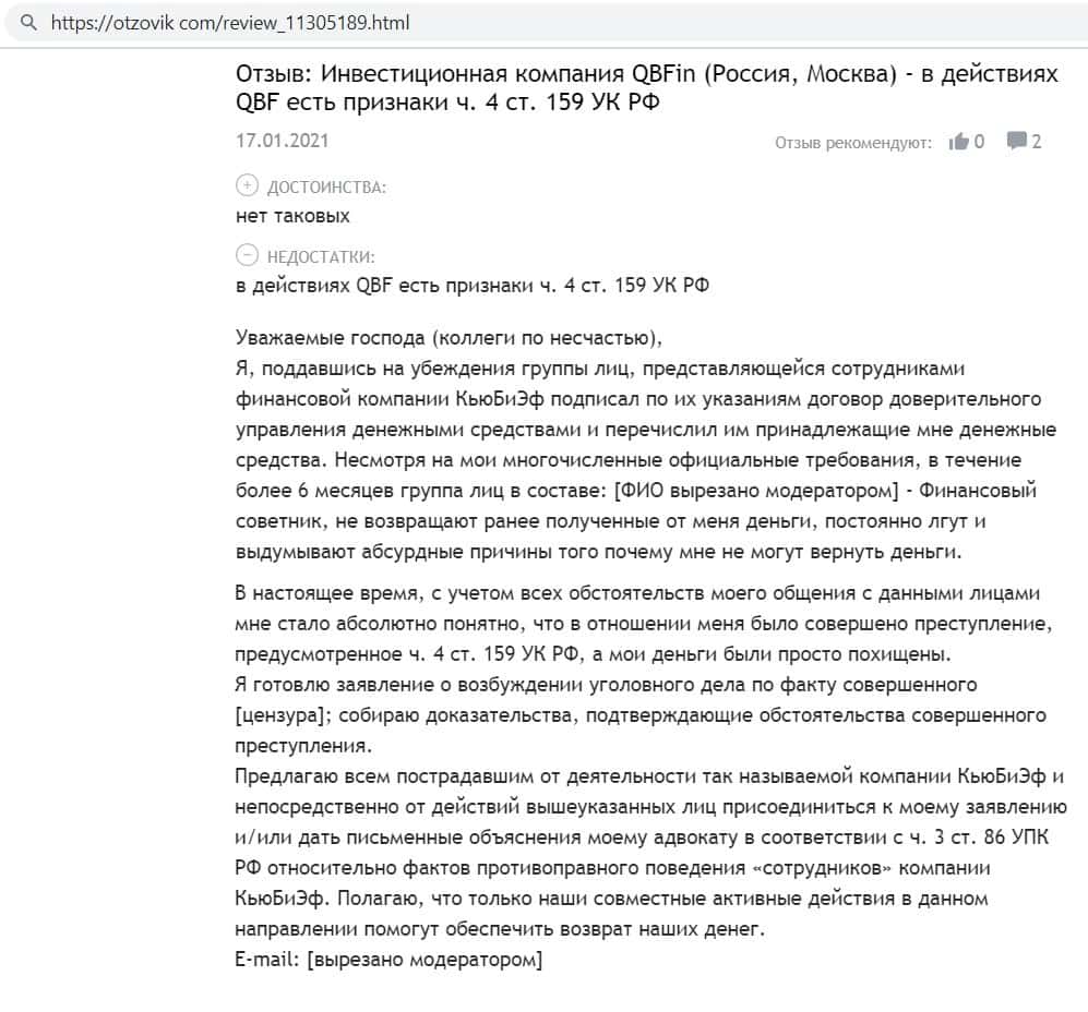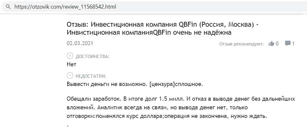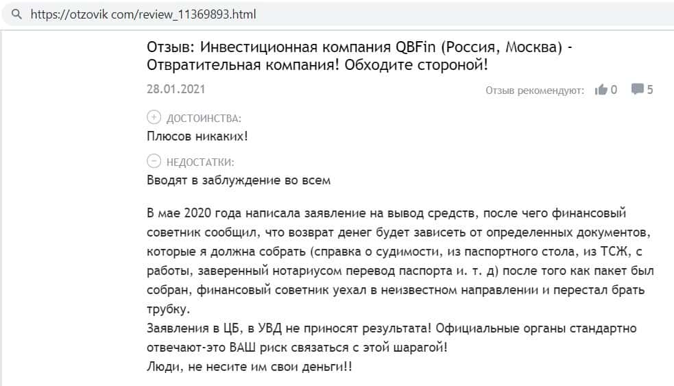 otzovik com - сайт с отзывами о жуликах QB Fin