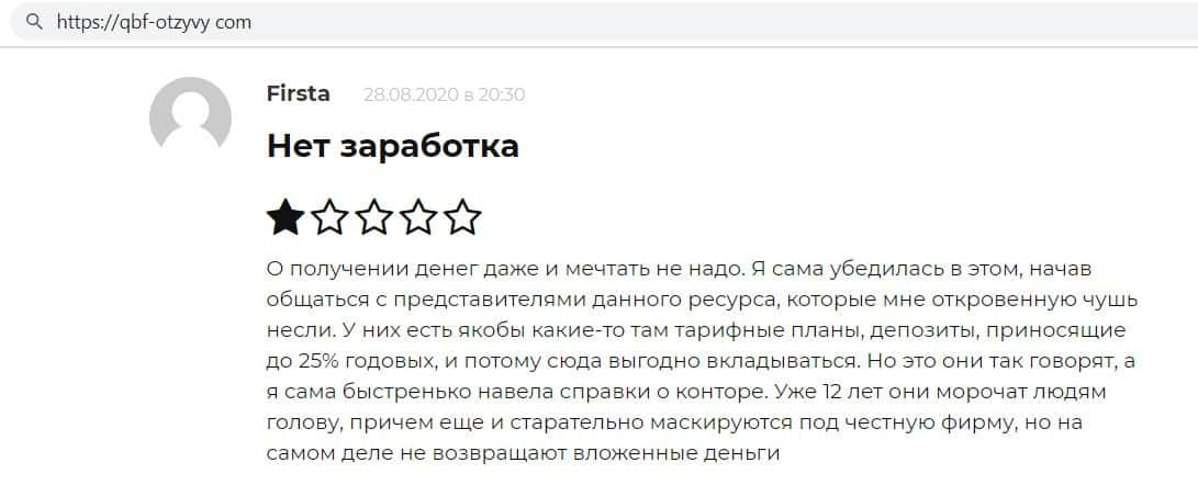 Интернет ресурс zabota-zarabotok ru опубликовал статью о QB Fin, в которой сообщил, что данная компания является мошенником, который кормит клиентов фальшивыми обещаниями.