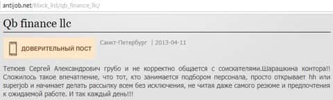 antijob net - сайт с отзывами о недоконторе Кью Б Фин