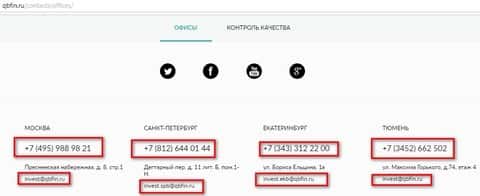Шарлатаны Кью Б Фин используют старые методы развода, используя электронные почты и телефонные переговоры. Для каждого офиса у них выделена отдельная почта и номер телефона, которые следует просто игнорировать, иначе попадетесь по полной. Вот соответственно и сами данные: