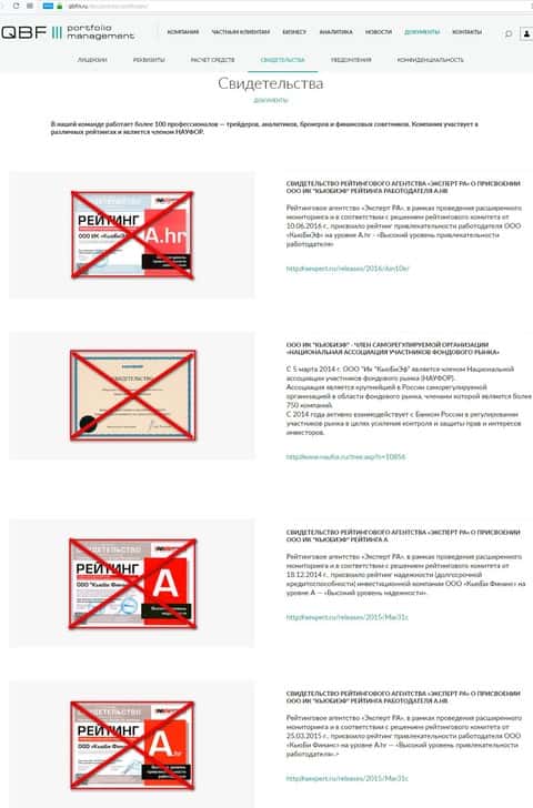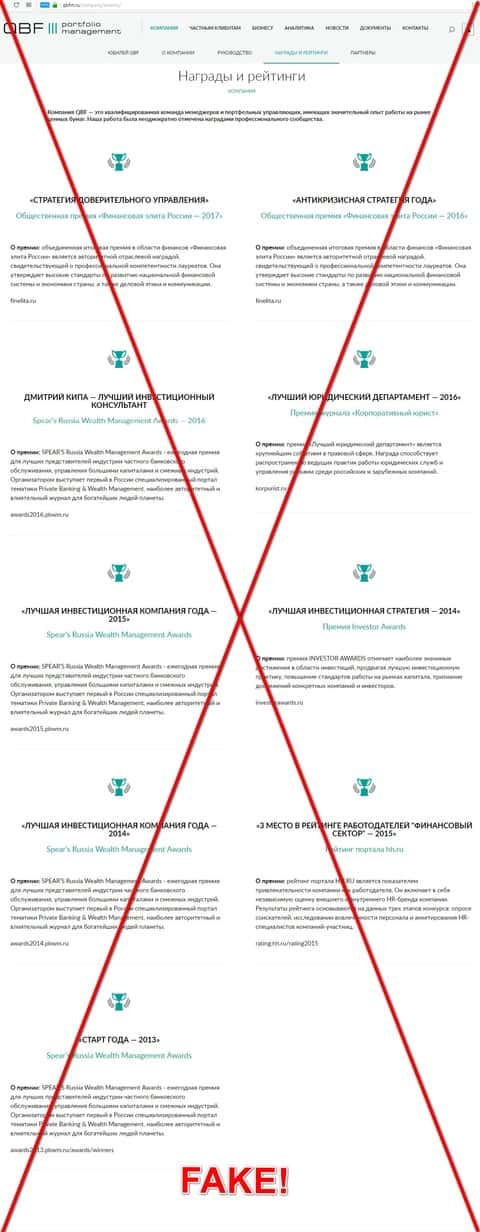 Фейковые награды, которые представила контора Кью Б Фин
