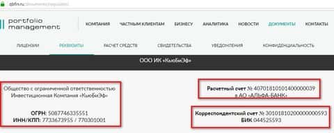 Итак, для ясности ситуации, укажем информацию о том как себя называет сама контора QB Fin в юридическом контексте. Это - ООО Инвестиционная Компания "КьюБиЭф", ООО ИК "КьюБиЭф" и LLC IC QBF. Дальше нам удалось найти данные банковских счетов и номера компании в реестре: ОГРН: 5087746335551, ИНН/КПП: 7733673955 / 770301001, расчетный счет № 40701810101400000039 в АО «АЛЬФА-БАНК», корреспондентский счет № 30101810200000000593, БИК 044525593.