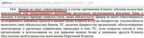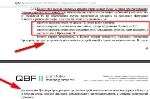 Еще один интересный факт этого регламента от Кью Б Фин по поводу вывода средств или закрытия счета. Там очень подробно расписано, что клиент будет возмещать брокеру если оный посчитай нужным. То есть просто так без потерь счет не закроешь, а соответственно и денег не увидишь.