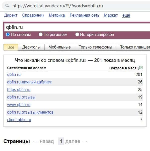 wordstat yandex ru - количество брендовых запросов в Яндексе